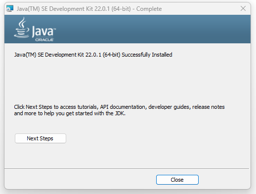 - "jdk-22_windows-x64_bin.exe" 파일이 다운로드 될 것입니다.