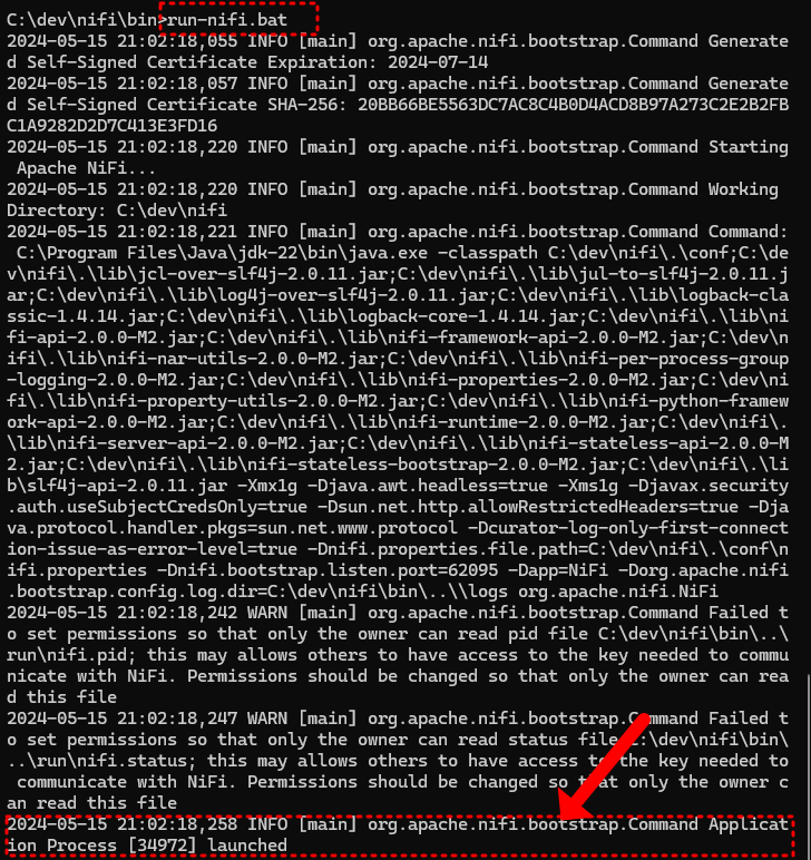 "2024-05-15 21:02:18,258 INFO [main] org.apache.nifi.bootstrap.Command Application Process [34972] launched"