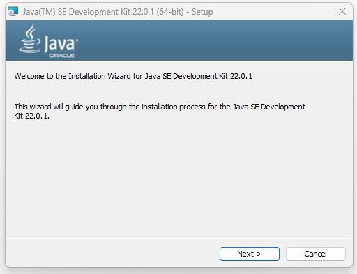 "jdk-22_windows-x64_bin.exe" 파일을 더블 클릭하여 실행합니다.